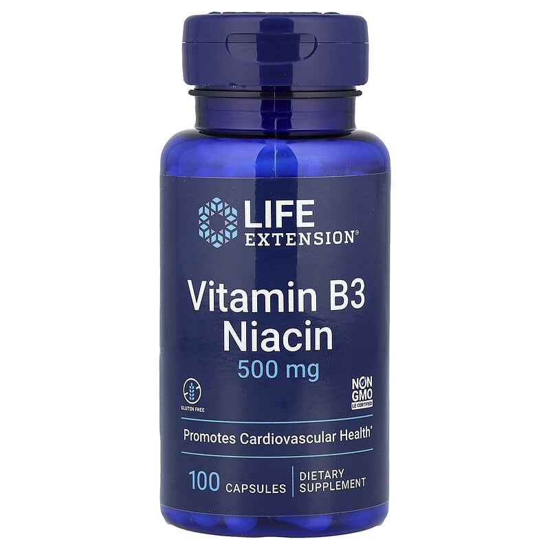 Vitamin B3 Niacin của Life Extension cung cấp 500 mg niacin mỗi viên, hỗ trợ sức khỏe tim mạch, chuyển hóa năng lượng và chức năng thần kinh. Niacin (vitamin B3) là một vitamin thiết yếu hòa tan trong nước, đóng vai trò quan trọng trong quá trình chuyển hóa carbohydrate, chất béo và protein, đồng thời hỗ trợ sức khỏe của da, hệ thần kinh và hệ tiêu hóa. Sản phẩm này được thiết kế để cung cấp liều lượng cao niacin, có thể giúp duy trì mức cholesterol khỏe mạnh và hỗ trợ lưu thông máu.